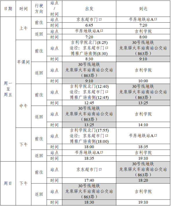 附件:1.教职工通勤班车线路C(书房地铁站线)运行时刻表(调整后)